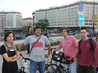 Todas as últimas sextas do mês, pelas 18:00, realiza-se pelo mundo fora a Massa Crítica, uma celebração da bicicleta e de um modo de vida mais saudável. Em Lisboa, o ponto de encontro é o Marquês do Pombal, e depois de uma iniciação em Fevereiro, o Jorge voltou a juntar-se a este grupo, na semana passada, para uma bicicletada que acabou na Esplanada da Graça. Este mês foram cerca de 60 pessoas... será que conseguimos superar este número em Abril? Fica aqui o desafio/convite.