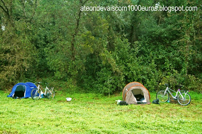 Estamos acampados mesmo ao pé de Óbidos. Pedimos autorização para usar um terreno baldio perto de umas casas - e aqui estamos. Jantámos cedo, portanto. Passam poucos minutos das oito e está cada um na sua tenda, a preparar-se para dormir. Ao fundo ouvimos os carros que passam na A8. Não chove - e não choveu enquanto pedalámos.